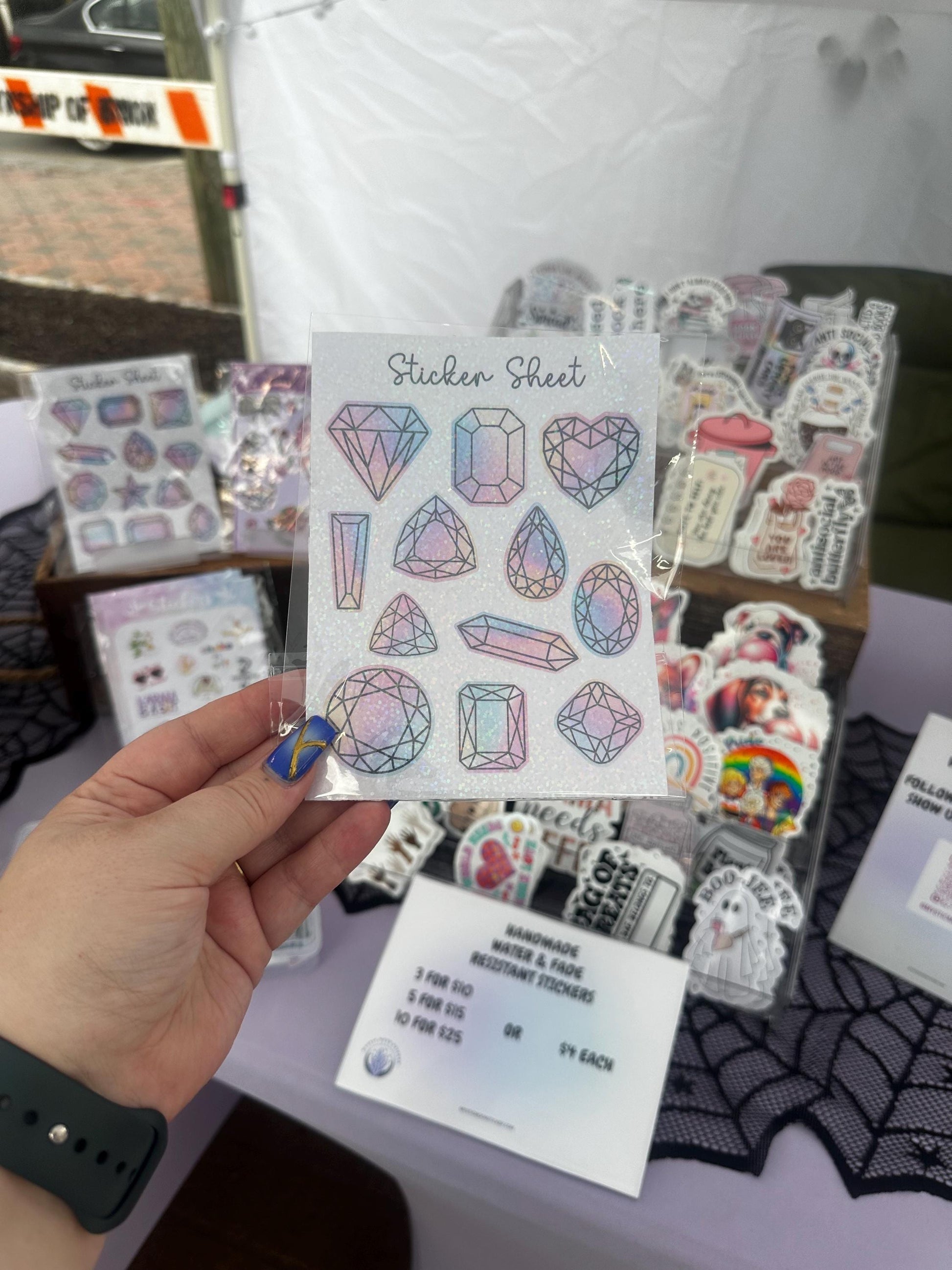Add a touch of magic to your life with this stunning holographic gemstone sticker sheet!